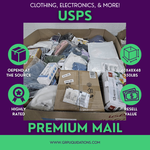 Looking for high-value mystery pallets? Our USPS Premium Mail Pallets offer a mix of big-ticket items and assorted merchandise — perfect for resellers and treasure hunters alike.
